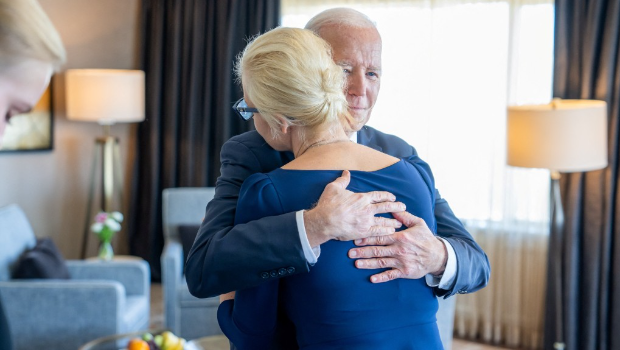 白宫发放的图片显示,拜登拥抱安慰尤利雅,并和她及达莎交谈。达莎是史丹福大学学生。
