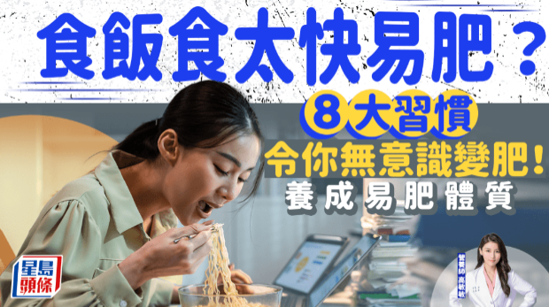 就算没有大吃大喝也一直变肥?有营养师指出,如果发现自己容易增磅,可能与日常生活无意识的习惯有关,但不一定与饮食有关。她提醒,有8大习惯容易养成易肥体质,吃饭吃太快也可能变肥!