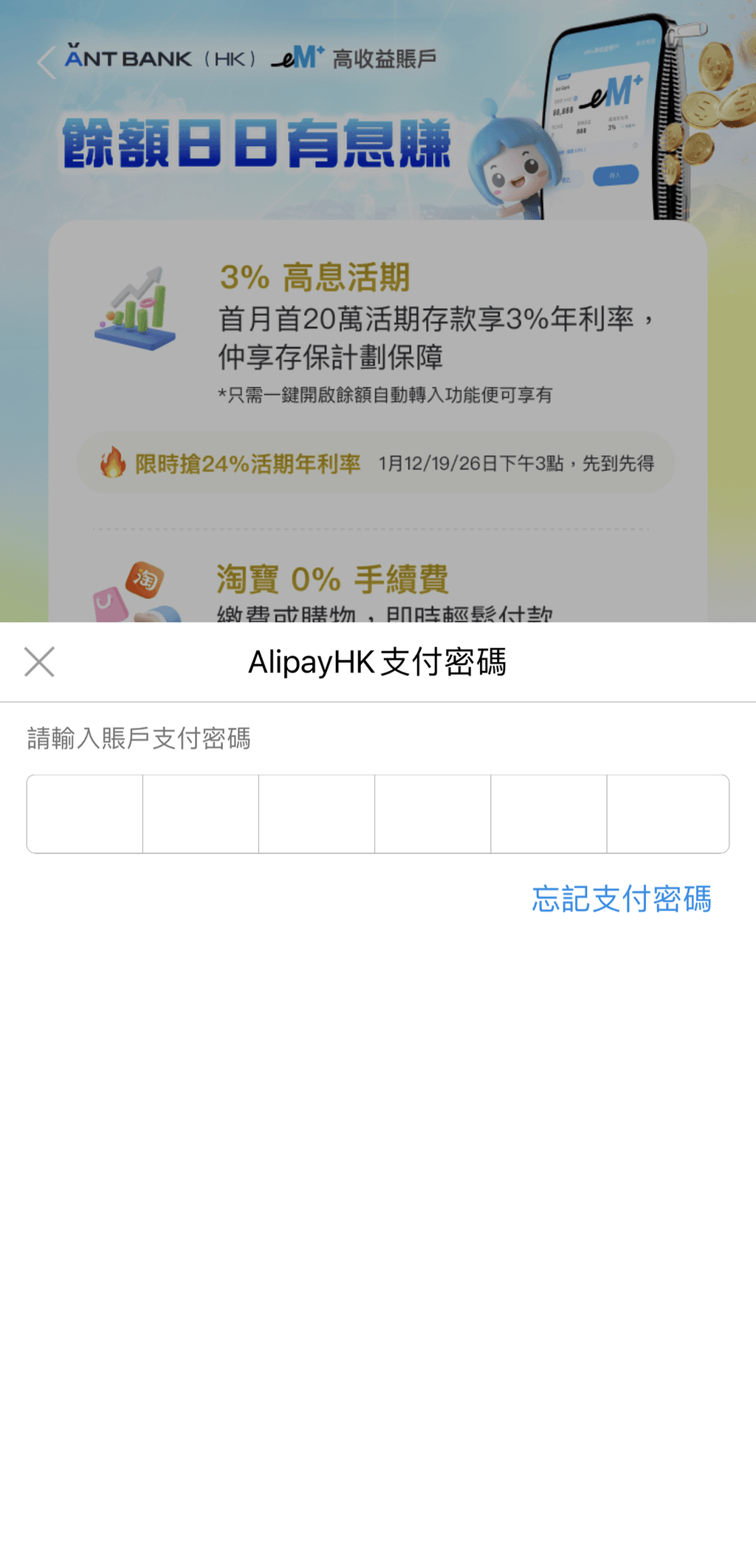 AlipayHK用户开通蚂蚁银行eM+步骤