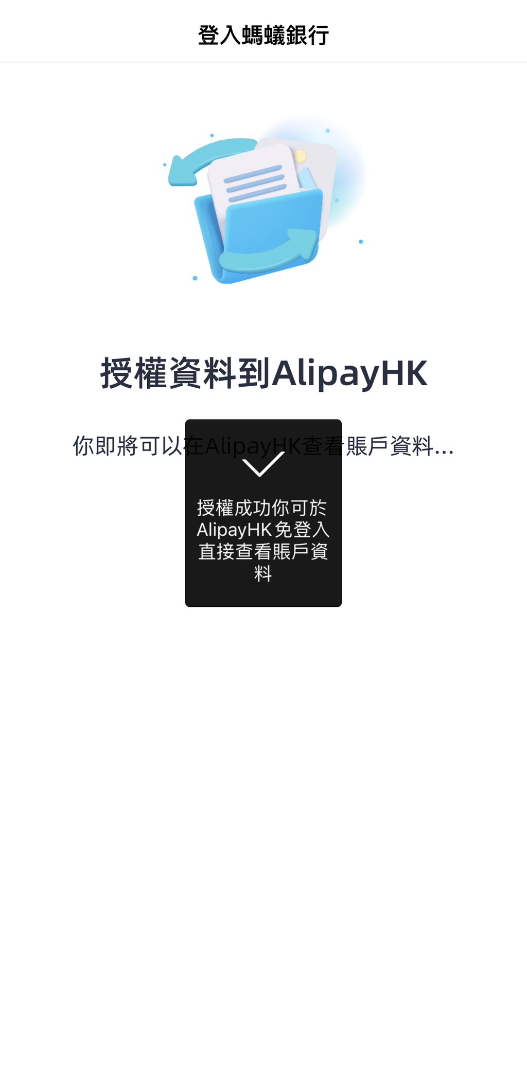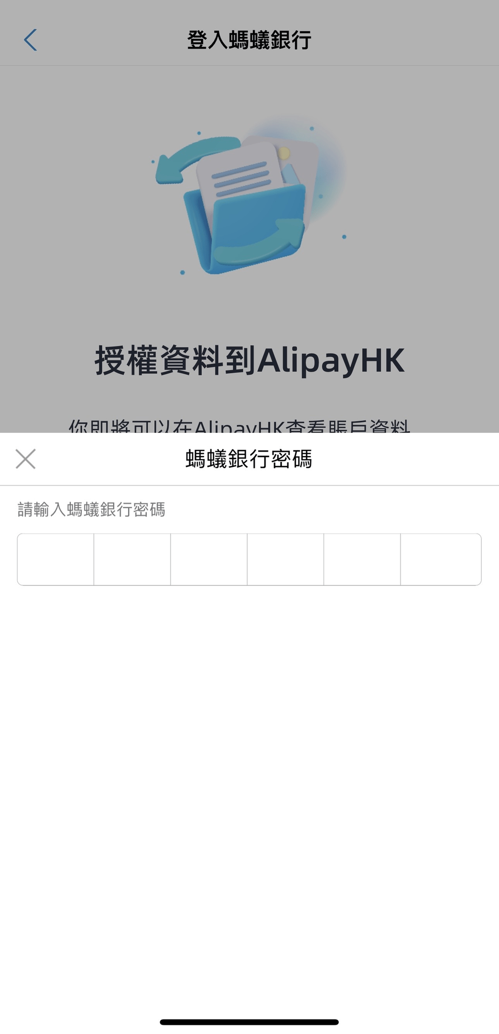 ▲5. 输入蚂蚁银行密码登入银行,并允许授权数据到 AlipayHK;