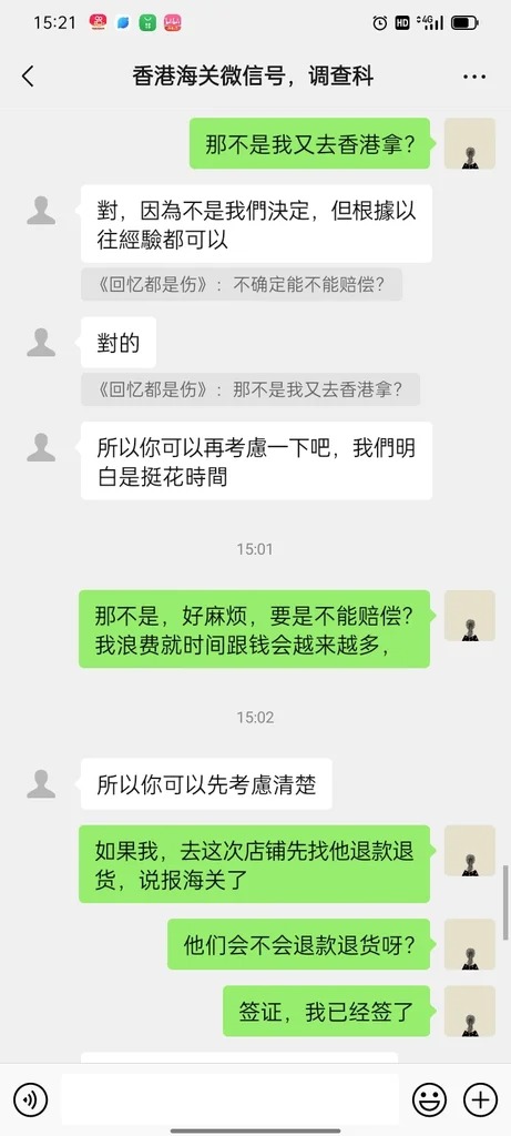 内地旅客中伏遇上药房“斤变两”骗案,返回内地再报错“假海关”荷包伤加心伤。一名深圳旅客农历新年来港旅游,在尖沙咀一间药房购买花胶,遭无良销售员透过“斤变两”手法被骗买入6,700元花胶连药品费,返回内地后致电海关热线,获一名男子来电自称调查科人员,要求加微信号,道出事发经过及个人资料,惟事主向《星岛申诉王》查证,证实“所托非人”,海关发声明称留意网上近日出现假香港海关微信公众号,呼吁巿民提高警觉。据了解,海关提及的假微信号正是女事主收到的微信号。