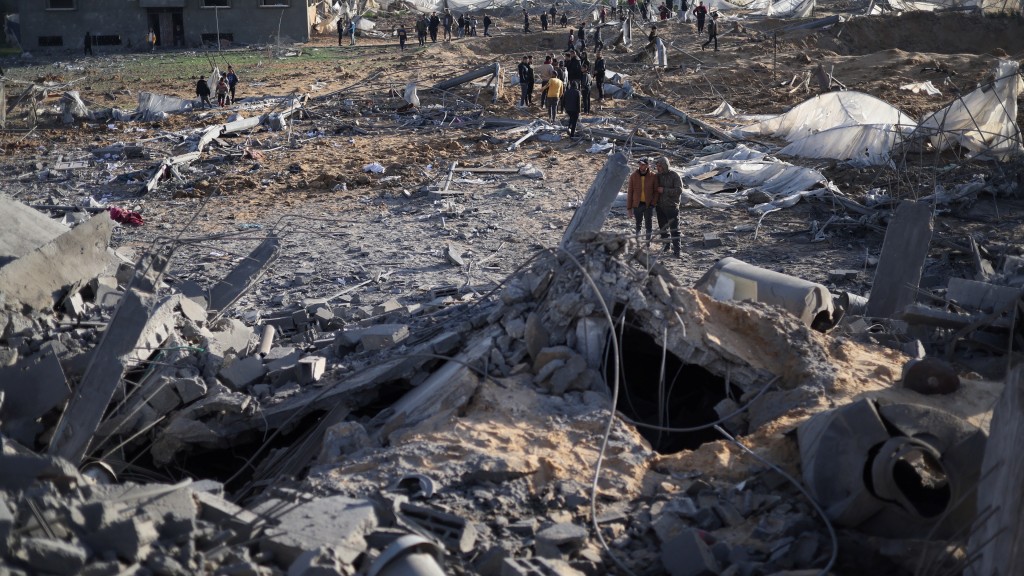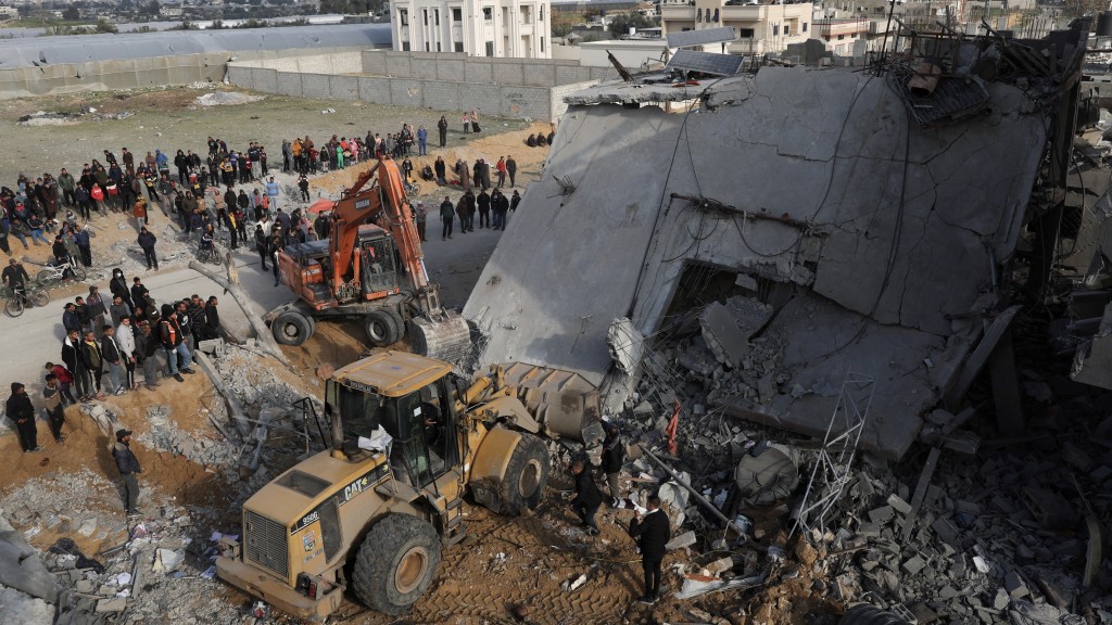 ▲以军空袭加沙拉法,巴勒斯坦民众检视被炸毁的房屋。 路透社