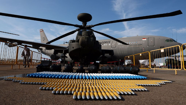 ▲美军一架AH-64阿帕契直升机23日在例行训练中坠毁,机上2名国民兵不幸罹难。图为新加坡航空展上的阿帕契直升机。(图/路透)