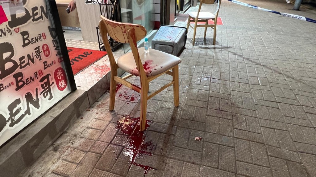 ▲店外血迹斑斑。 黎志伟摄