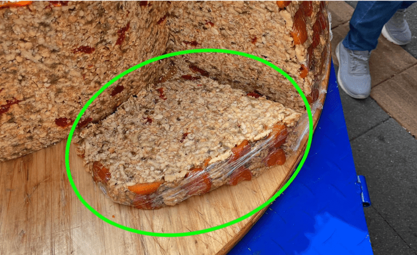 新疆切糕是新疆传统糕点(又称玛仁糖),利用多种坚果,加入糖浆压制而成。有部分无良商人会混淆价格,强逼消费。由于切糕本身颇有份量,因此一小块的价钱随时变天价!