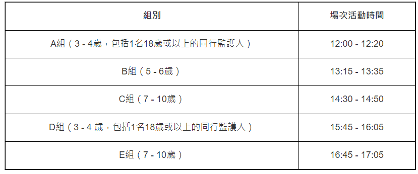 时间:12:0 - 17:05(按年龄划分不同时段)