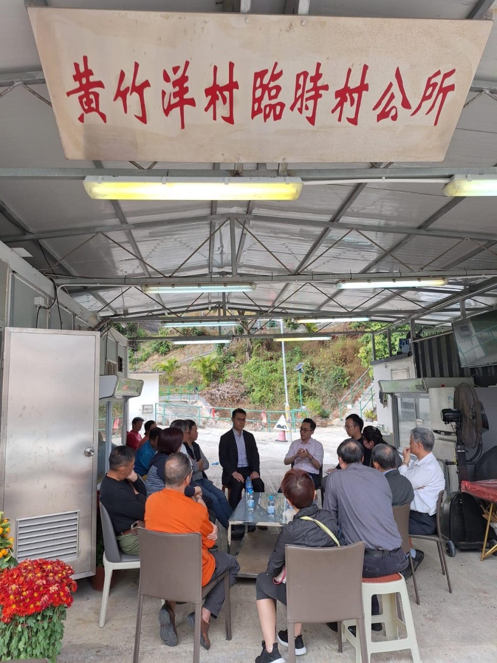 ▲沙田民政专员、运输署代表、小巴运营商在黄竹洋村内协商解决办法。 (民政事务总署fb)