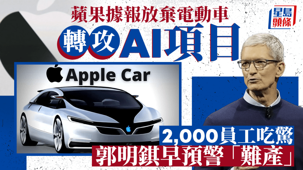 电动车项目不敌AI热潮!苹果(AAPL)据报周二向内部公布放弃长达10年的电动车开发计划,令该项目近2,000名员工大感吃惊,而团队将转向发展人工智能(AI)项目;该股周二收报182.63美元,升0.81%。