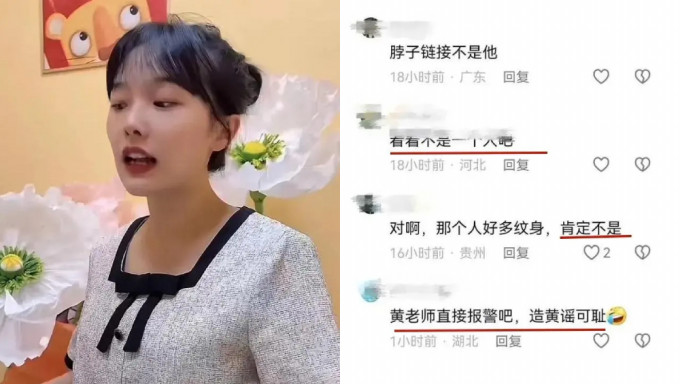 这些讯息在多个不同的社群平台传播,引发不少网友到黄老师帐号下留下不友善的言论,甚至对幼师职业进行诋毁。也有大量网友留言反驳,影片人物与黄老师“根本不像”、“黄老师影片中胳膊上根本没有纹身”、“造黄谣可耻”、“建议报警”。