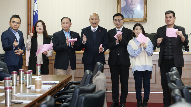 ▲“立法院”各委员会29日举行召委选举,院长韩国瑜(左四)、副院长江启臣(右三)与党籍“立委”在外交及“国防委员会”一起投票。中时网
