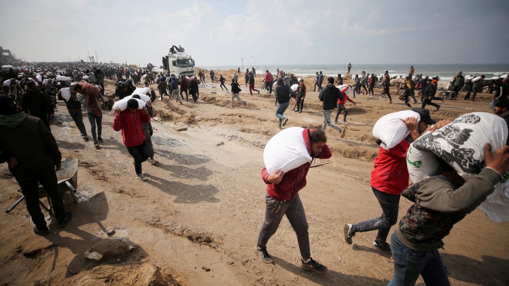 援助组织表示,目前加沙大部分地区几乎不可能提供人道援助,部分原因是绝望的人群淹没了援助车队。联合国表示,加萨 230 万巴勒斯坦人中有四分之一面临飢饿。