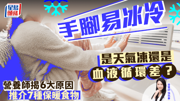 逢气温一跌,不少人就开始出现手脚冰冷情况,用力搓也无法变暖。有营养师提醒,手脚冰冷是人体血液循环较差的症状,更要注意可能是糖尿病或其他疾病的先兆。她又分享多个令手脚回暖的方法,并推介7种保暖食物。