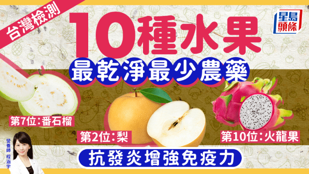 程涵宇表示,水果富含维他命C、矿物质、膳食纤维和抗氧化的植物化合物,有抗发炎和增强免疫力究,建议每天吃水果。在上述名单之中,她最推介3款不合格率为零的水果。