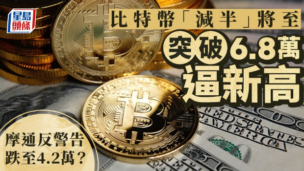 比特币价格越升越有,今早一度高见68,658美元,暂报68,534美元,按日升近7.5%,近一年升幅更达205%,并已非常贴近2021年11月创下的近6.9万美元历史高位;以太币亦按日升近5%至3,642.84美元。有分析认为比特币将保持升势,或可再创历史新高,亦有分析认为7万美元才是阻力位;不过,摩通发报告指出,在4月份备受期待的“比特币减半”事件后,除了会对比特币矿工的盈利能力产生负面影响外,更警告比特币价格可能会跌至4.2万美元,即潜在跌幅高近四成。