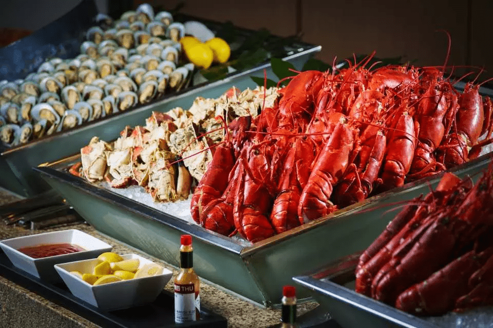港岛香格里拉酒店Cafe TOO环球海鲜自助餐备受顾客推介,除了有令人垂涎欲滴的海鲜,亦有一系列中式热荤及西式美馔,更有东南亚风味佳餚及香港地道美食,让大家可一次过如环谆世界,尝尽多国美食。近日亦推出多款升级晚市海鲜佳餚,包括有波士顿龙虾、红虾刺身(阿根廷)和拖罗刺身,更有日本寿司、卷物及即制刺身手卷,爱吃铁板的朋友就不要错过铁板和牛,加上惹味的港式避风塘炒龙虾及黄金虾球等美食,绝对令人大快朵颐。