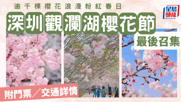 深圳观澜湖樱花节最后召集! 踏入三月,除了香港多个赏樱好去处,北上深圳都可以欣赏到大片粉色樱花海,说的是深圳观澜湖生态运动社举行的“第8届樱花节暨新春桃花展”,由即日起至3月10日,入场可以看到超过1,000棵樱花树、桃花树及金鱼草花海等,即看深圳观澜湖樱花节交通及门票详情!