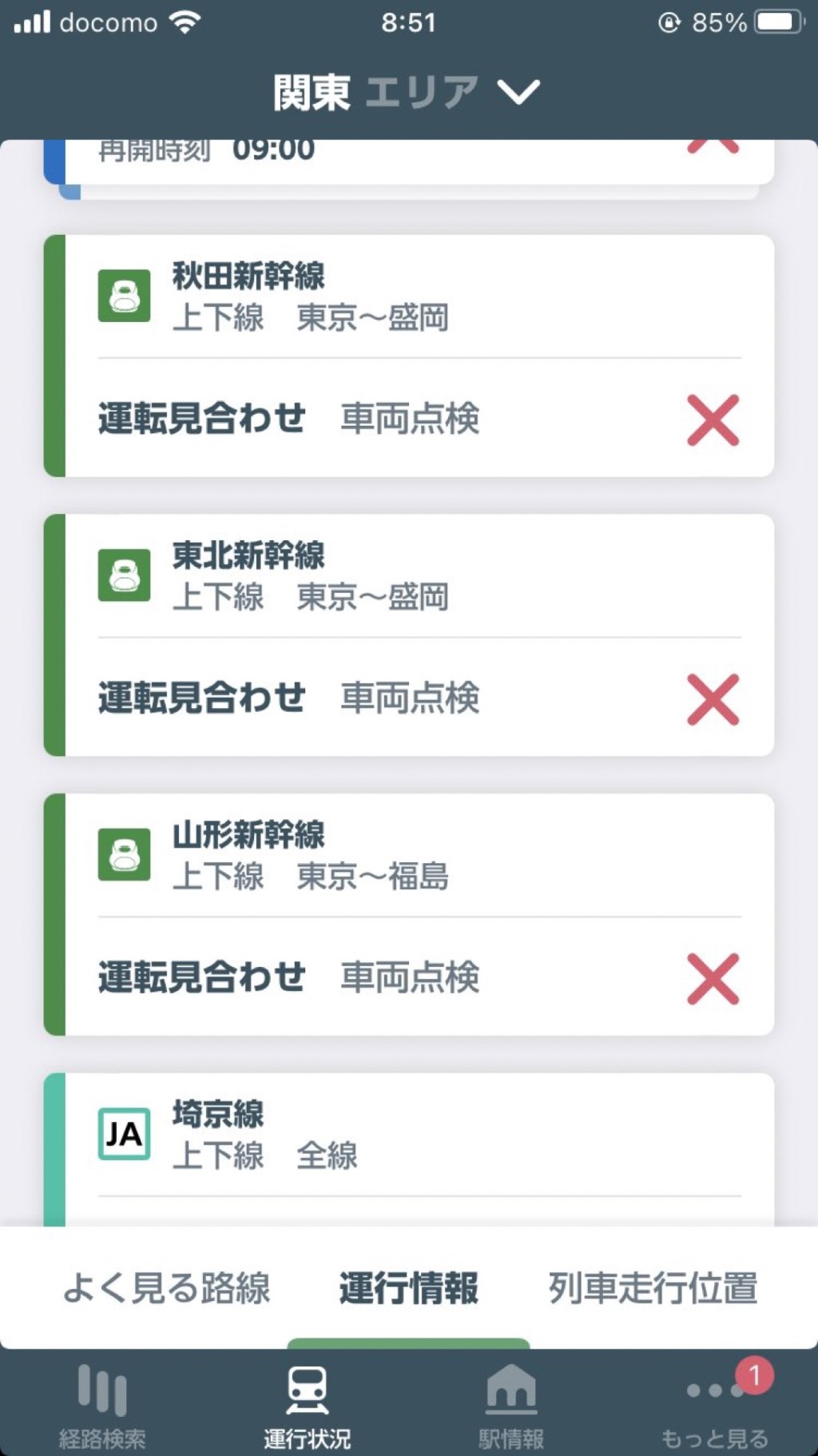 东京与盛冈之间路线一度停驶,东北、山形、秋田新干线上下行共30班车停驶,45班列车延误151分钟,约3.25万名旅客受影响。据悉事发之际路线上有积雪,JR东日本正在调查为何会“滑出站”。