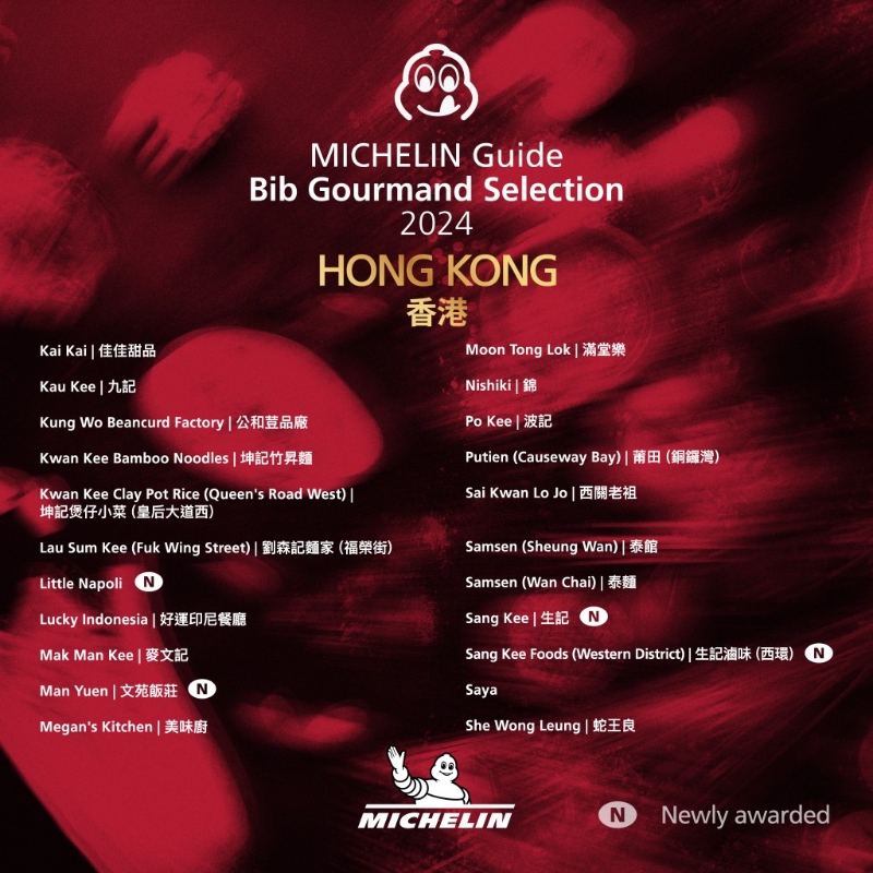 “我们非常高兴地欢迎新入选必比登推介名单的7间香港食肆和3间澳门食肆,他们充分展现两个美食之都的才华和活力。 77间入选必比登推介名单的食肆不仅彰显五光十色的港澳餐饮业文化,更反映两地的餐饮业机会处处。”