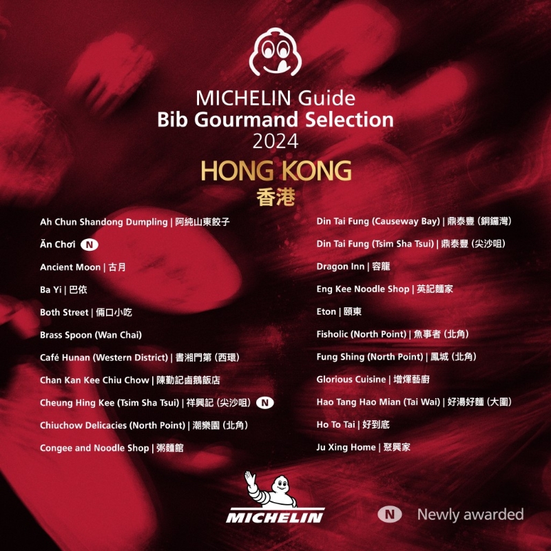 《香港澳门米其林指南 2024》必比登推介完整名单如下: