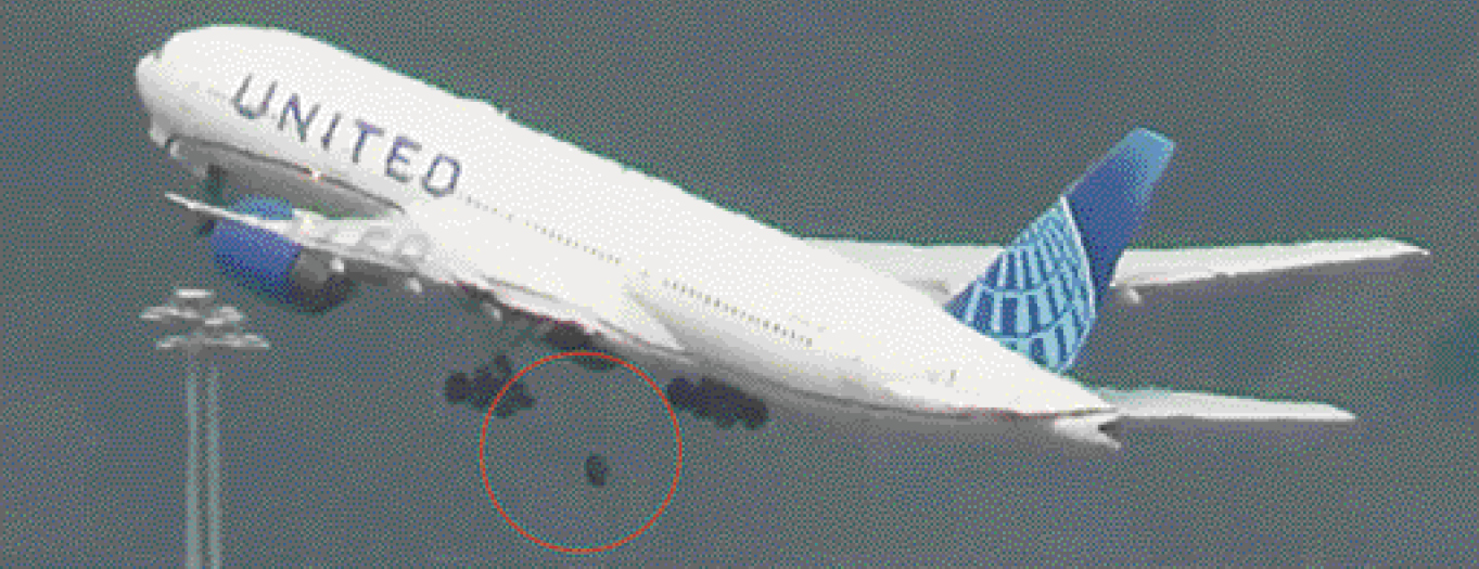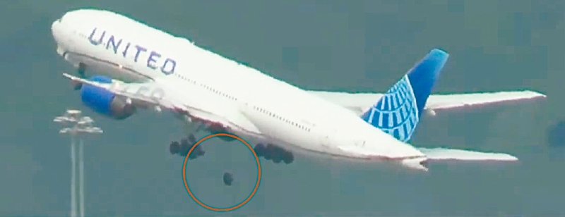 ▲3月7日旧金山国际机场一架波音飞机起飞后轮子脱落。本报资料图