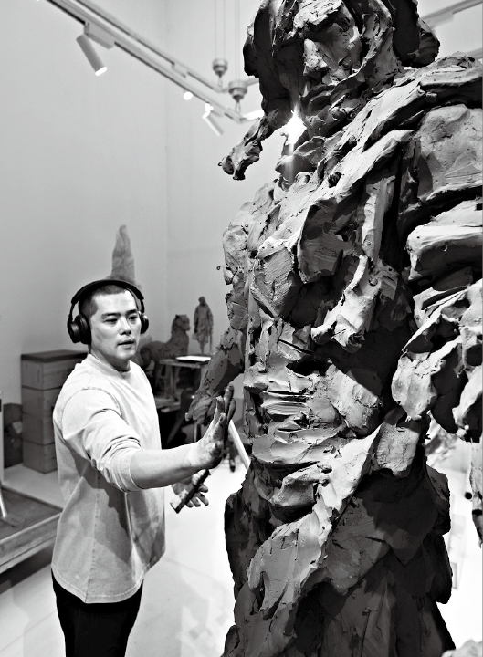 ▲任哲今次特别为活动创作了逾30件大型金庸武侠雕塑。