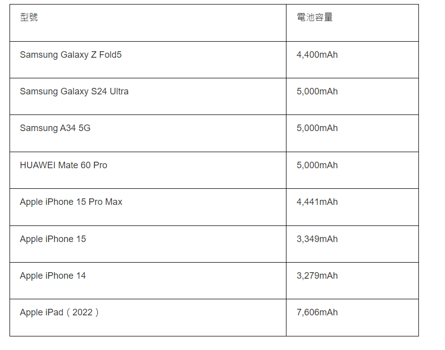 热门手机/平板电池容量参考