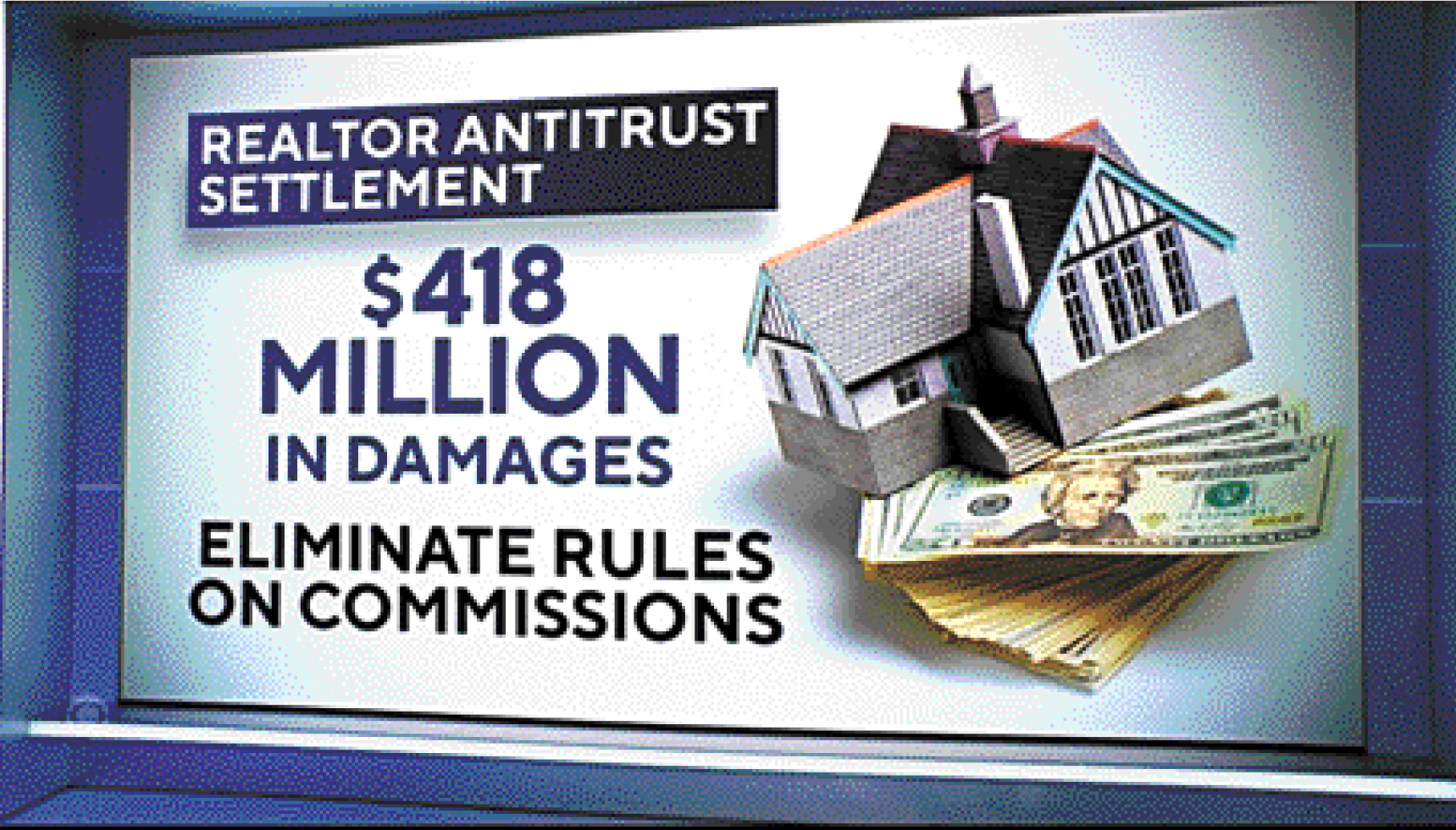▲全国房地产经纪人协会同意,支付4.18亿元赔偿金给大批房主,并将修改几项降低住房成本的规则,包括削减佣金,以解决集体诉讼。 电视截图