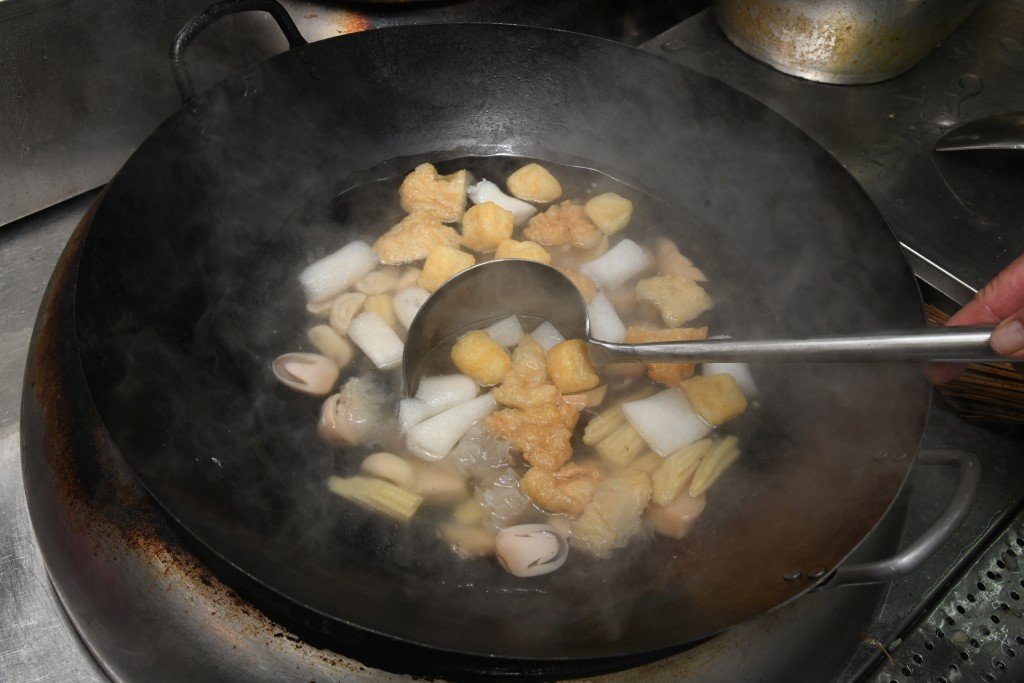 刘师傅儿时过年必吃南乳罗汉焖斋煲,当年生活简单及物资不及现在丰盛,刘妈妈每逢过年前便会用多种时蔬及菇菌加南乳煮成斋菜,是大年初一第一口的应节美食。