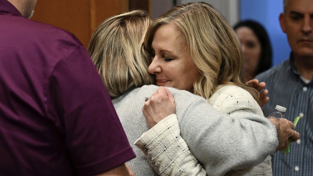 ▲检控官在宣判后与受害人家属拥抱。 美联社