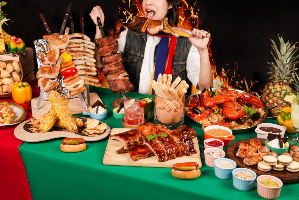 于3月23日起推出全新“肉罢不能南美洲”下午茶自助餐,无限量供应巴西烤肉、南美洲国家特色美食及甜点!巴西烤肉区将提供香气四溢的烤肉盛宴,包括牛肉、春鸡、猪肉、香肠等轮流供应;另有一系列南美洲国家特色美食,如墨西哥烤粟米、阿根廷香肠三明治、阿根廷馅饼等;而海鲜爱好者不容错过多款海鲜美食,如柠檬汁醃三文鱼、龙虾海鲜饭、墨西哥辣椒虾薄饼等。客人更可于即制墨西哥夹饼专区,依个人口味随意配搭馅料及酱汁,创作自己专属的墨西哥夹饼。 当然不少得南美甜点,包括炸油条(Churros)、阿根廷焦糖牛奶夹心饼、酥皮忌廉卷筒、海盐朱古力牛奶焦糖挞等,探索南美洲的甜蜜滋味!