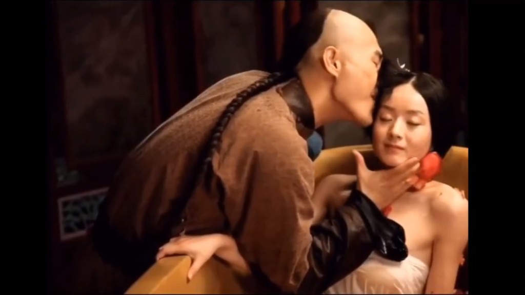 ▲赵丽颖与饰演“九阿哥”的男星朱梓骁拍了一场露骨激情床戏,画面中赵丽颖上半身仅穿一件红色肚兜,整个人跨坐在朱梓骁身上。