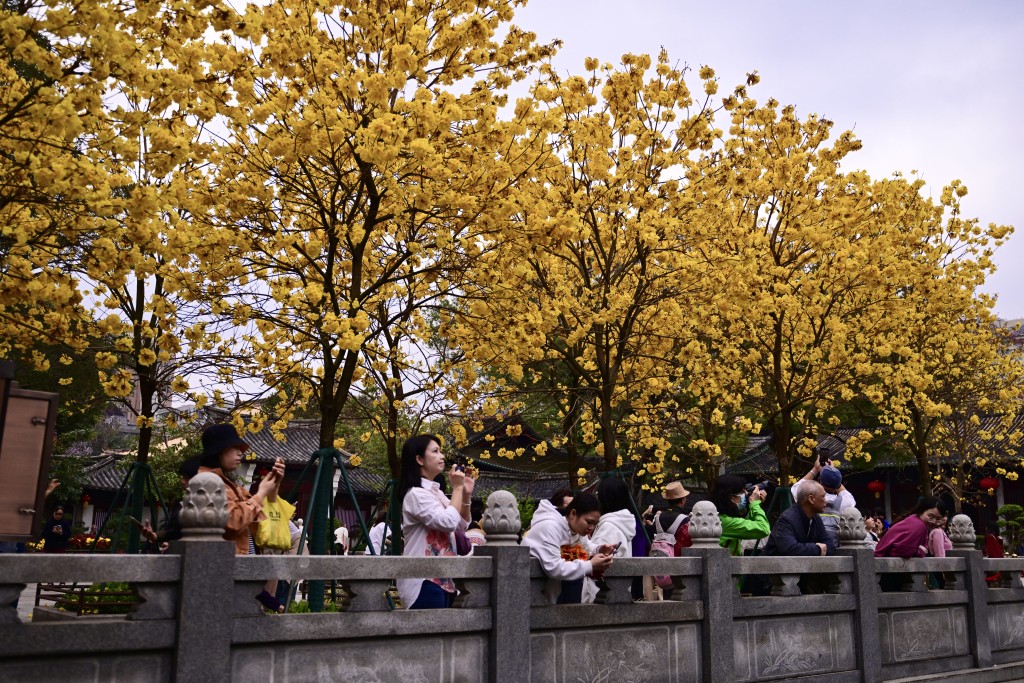 ▲近日光孝寺有一大片黄花风铃木正在灿烂盛放。