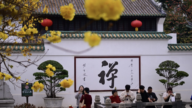 光孝寺是广州历史最悠久的寺院建筑,近日寺内有一大片黄花风铃木正在灿烂盛放。莲池旁种有两排、共10多棵风铃木,踏入3月花期,满树串串如风铃的黄色花朵,开得十分密集,化身成为黄金小路,加上古色古香的寺院建筑作背景,显得份外庄严美丽。佛教中有“借花供佛”之意,大家不妨前来赏花参禅,欣赏金黄花海。