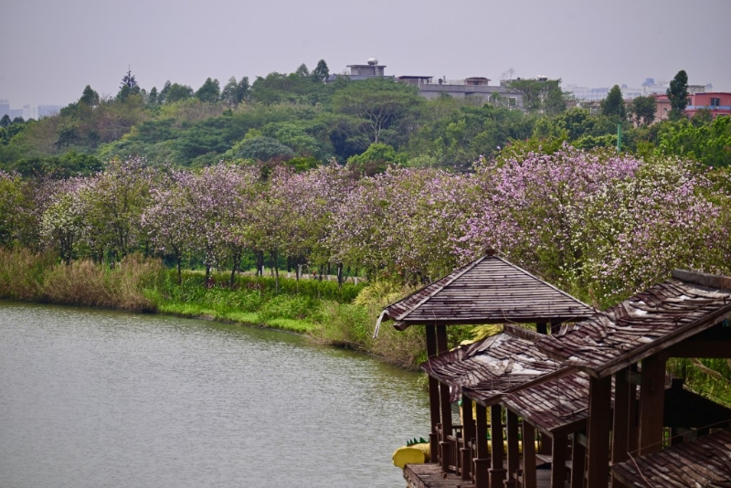 ▲河畔两旁种植数百棵宫粉羊蹄甲。