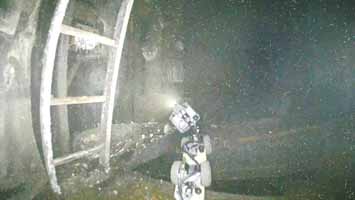 其中一张图片拍下悬挂的冰柱状物体,在将控制棒移入和移出反应堆的设备顶部,可能就是含有核燃料碎片的物体,即熔化的核燃料混合周围结构。 但这是第一次在水面上捕捉到可能含有核燃料碎片的东西。