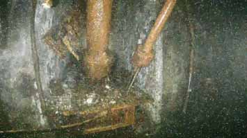 ▲控制棒驱动机构(CRD)进出炉心的开口。 TEPCO