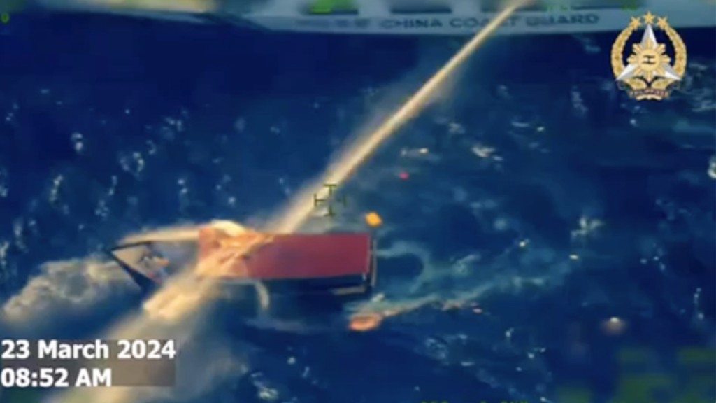 美联社表示,与之前几次相比,中国海警船的这次水炮轰击明显更猛、时间更长。菲律宾声称UM-4号船只受损,无法继续航行。