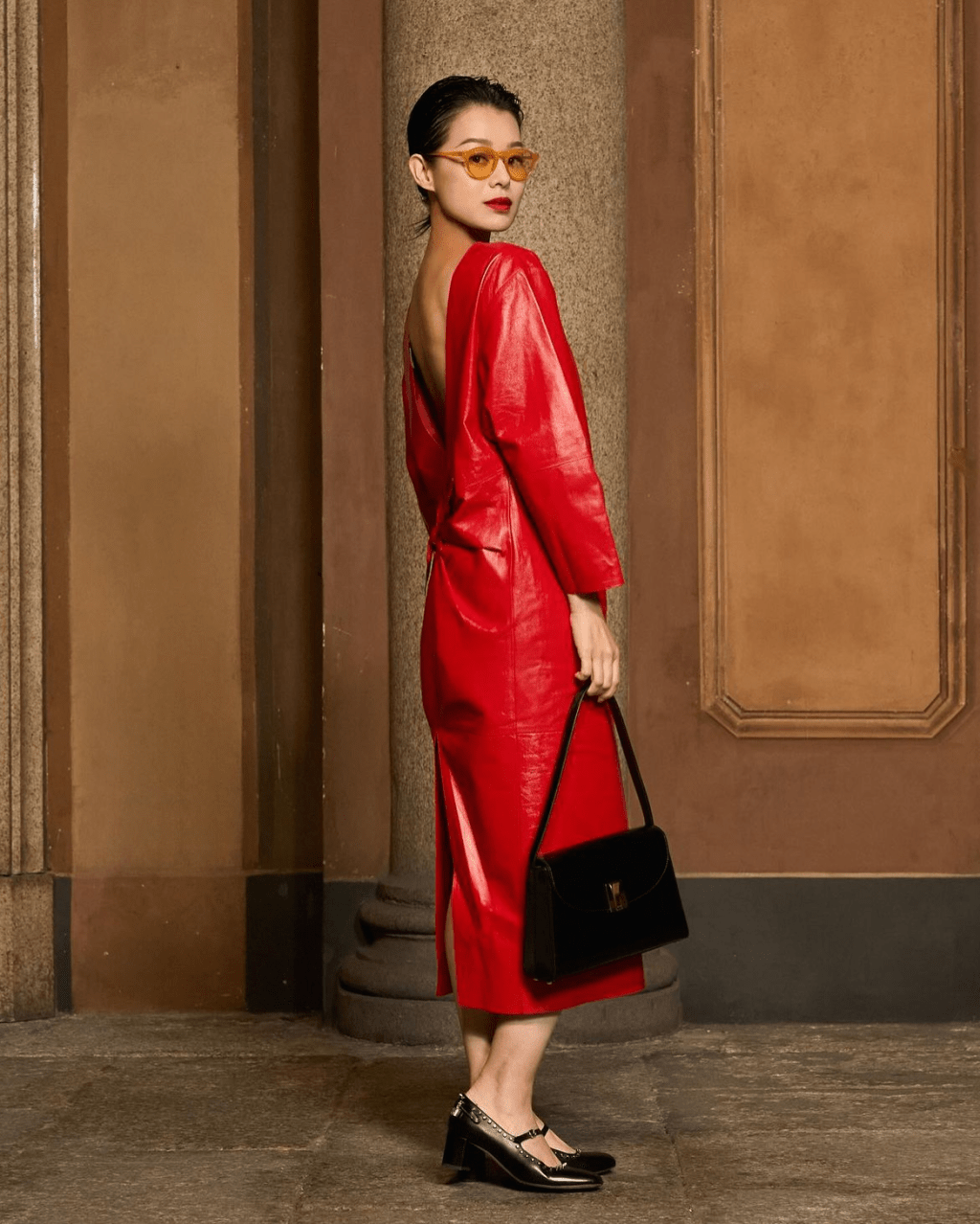▲香港艺人胡杏儿以大露背连身裙衬以窝钉Mary Jane高跟鞋,型格又性感。(图片来源:IG@myoliemyolie)