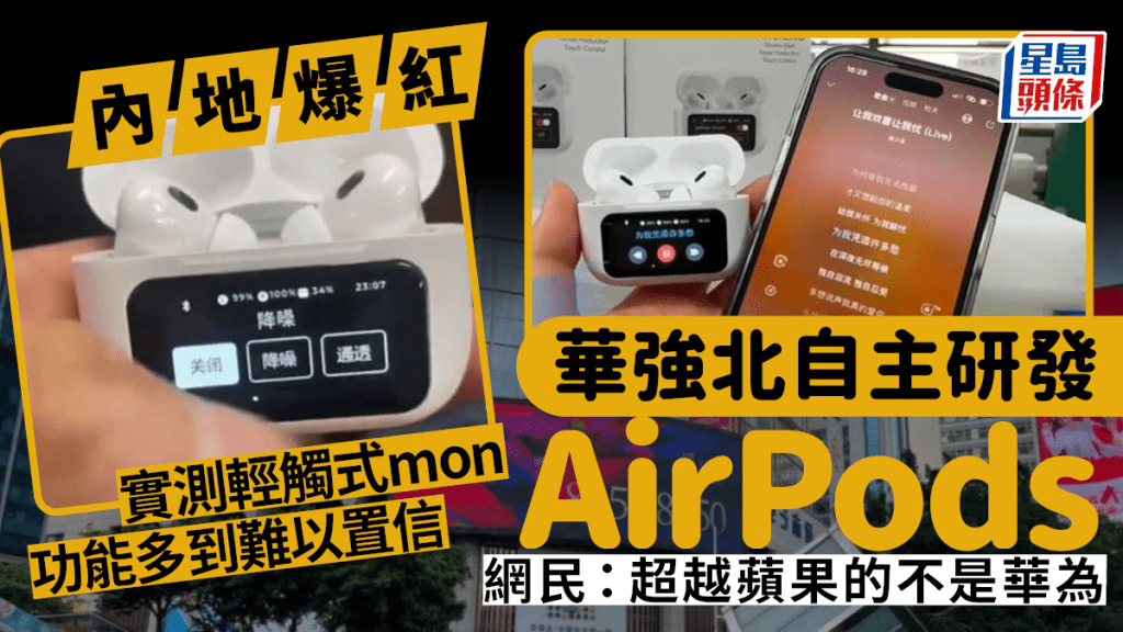 深圳除了吃喝玩乐,便宜的高科技产品都是内地人热买的物品!近日,小红书就流行深圳华强北最新自家研发的AirPods,外型与苹果公司Apple出品的AirPods相若,惟华强北出品的AirPods外壳更设有轻触式显示屏幕,似乎比“原版”更胜一筹?!