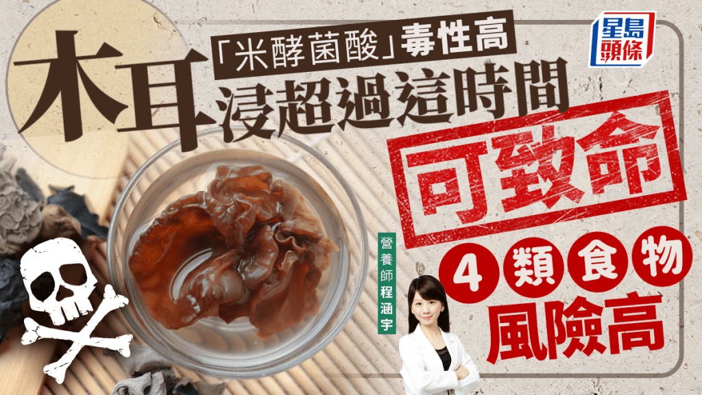 米酵菌酸在什么食物当中最常见?程涵宇指出,有4类食物容易受米酵菌酸污染,包括浸泡太久的木耳: