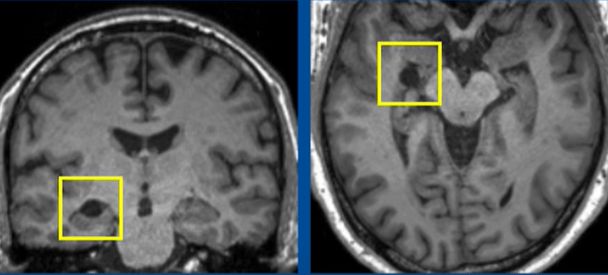 医生后来发现他的脑部出现一个大小约1厘米的圆形病灶,神经科医生推测病灶可能是左侧海马回的蛛网膜囊肿,其后诊断他患有罕见的神经系统疾病脸部变形症(Prosopometamorphopsia,PMO)。