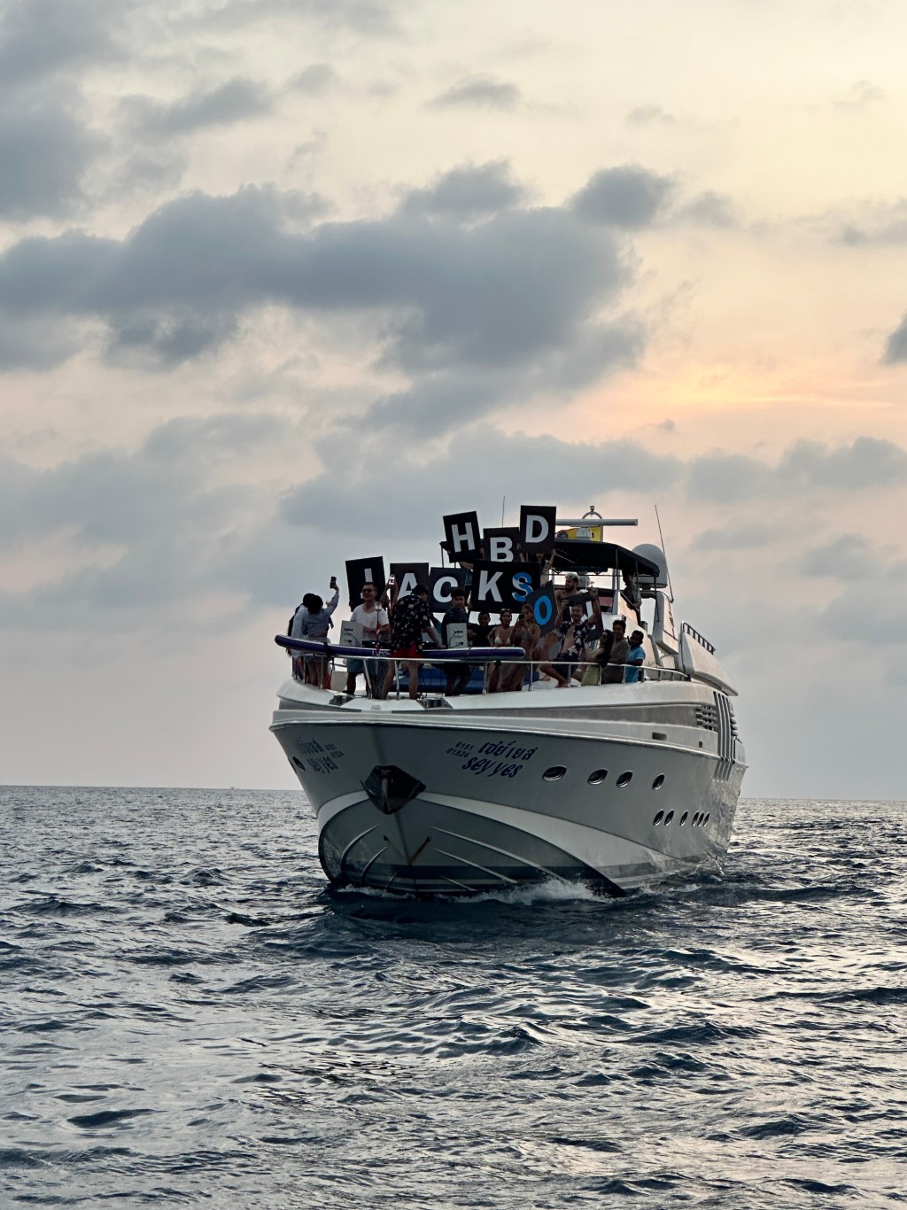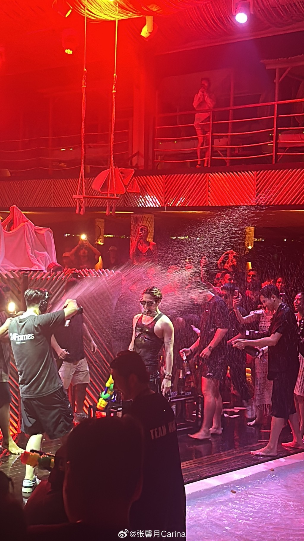 王嘉尔从27日起就在布吉举办“TEAM WANG INTERNATIONAL SCHOOL”生日派对,与父母及一大班朋友一起庆祝,他更非常用心地为每一位来宾准备一张附有名字和照片的学生证、活动手册,也安排了丰富的节目如烟火骚等。现场有不少身穿火辣比坚尼的索女,又有安排性感女郎跳舞,而沙滩上还做了一个巨型雕像,寓意“巨人”的意思。张馨月都有分享派对中众人狂欢的照片,亦有到巨型雕像前打卡,不过她似乎没有玩足四天,因为张馨月今日(31日)已分享一张身穿一条透视低胸长裙的照片,并指为出席上海时装周而穿。