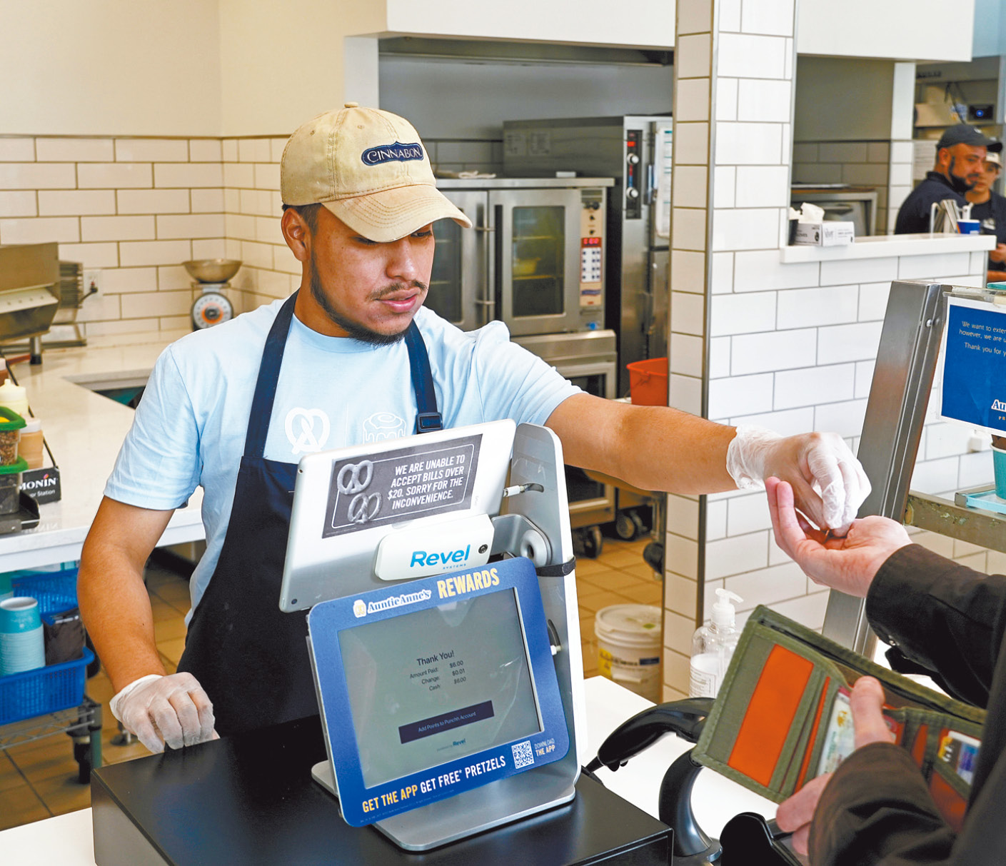 ▲饼店加盟主约翰逊承认因为新法必须调升产品售价。美联社