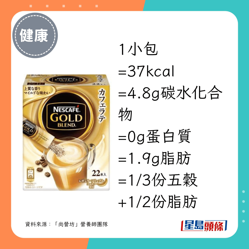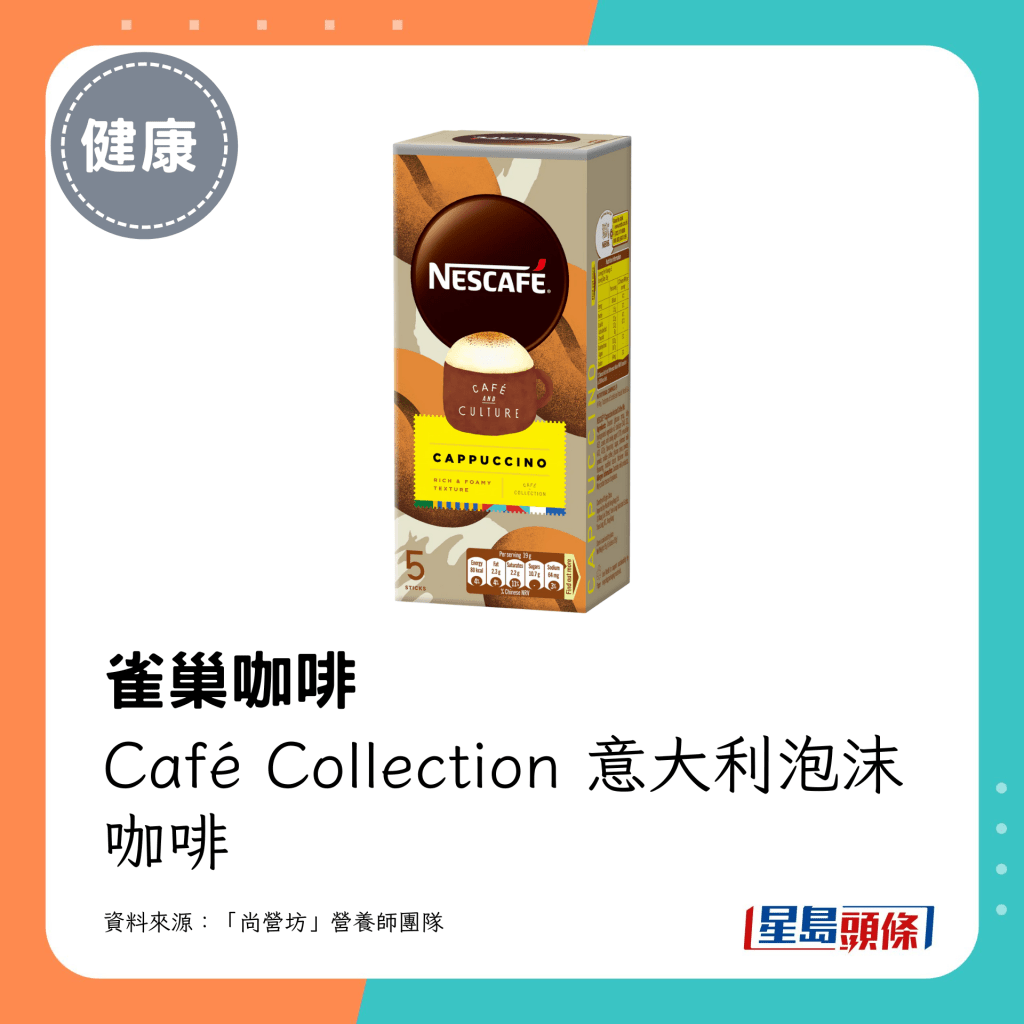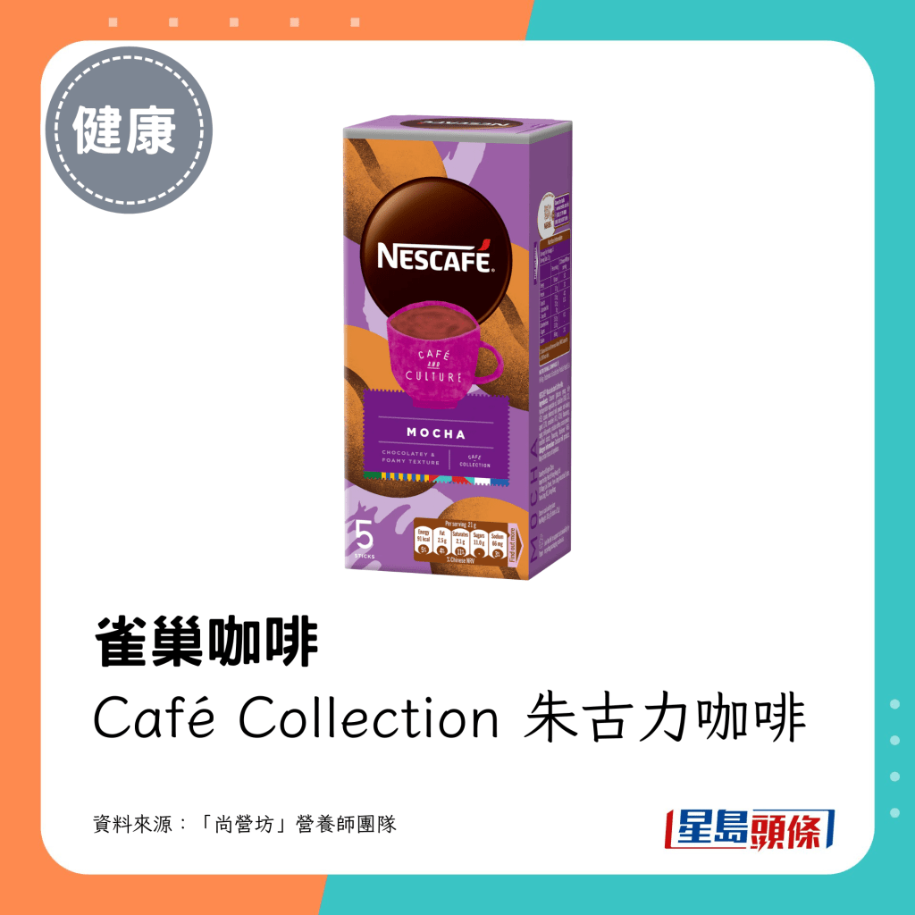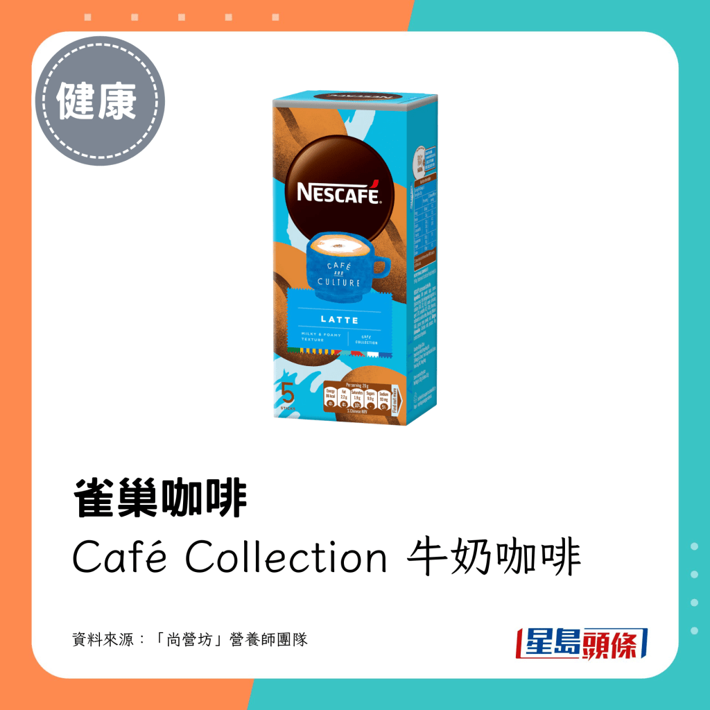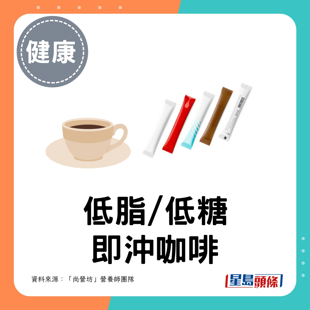 减肥期间,喝咖啡都可以有斋啡以外的选择!“尚营坊”营养师团队在其Facebook专页推介24款低糖或低脂的咖啡,包括“雀巢”、“UCC”等常见品牌的罐装、枝装或即冲咖啡。营养师以每1罐或1小包计算,列出各款较健康咖啡之卡路里、碳水化合物、蛋白质及脂肪。他们提醒,即使是微糖咖啡都有一定的糖分或脂肪,饮用前记得换算份量。