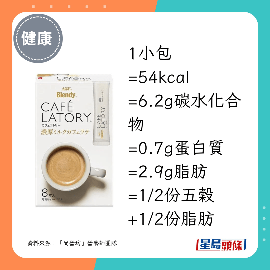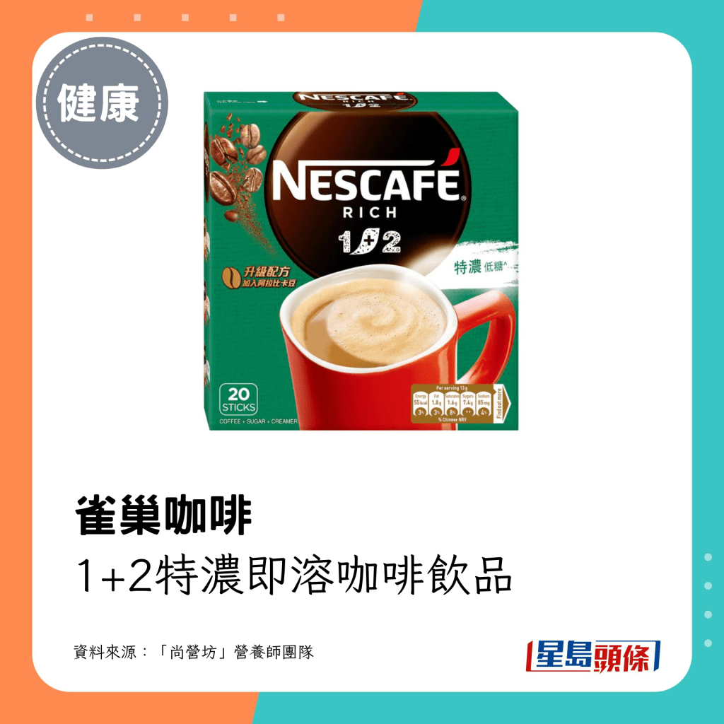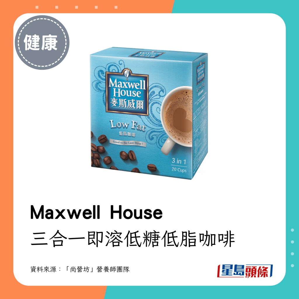 营养师团队推介的18款即冲咖啡当中,最低脂及最低卡之选如下:
