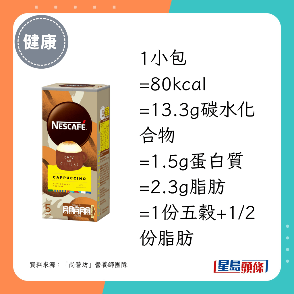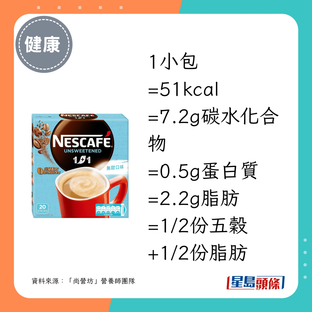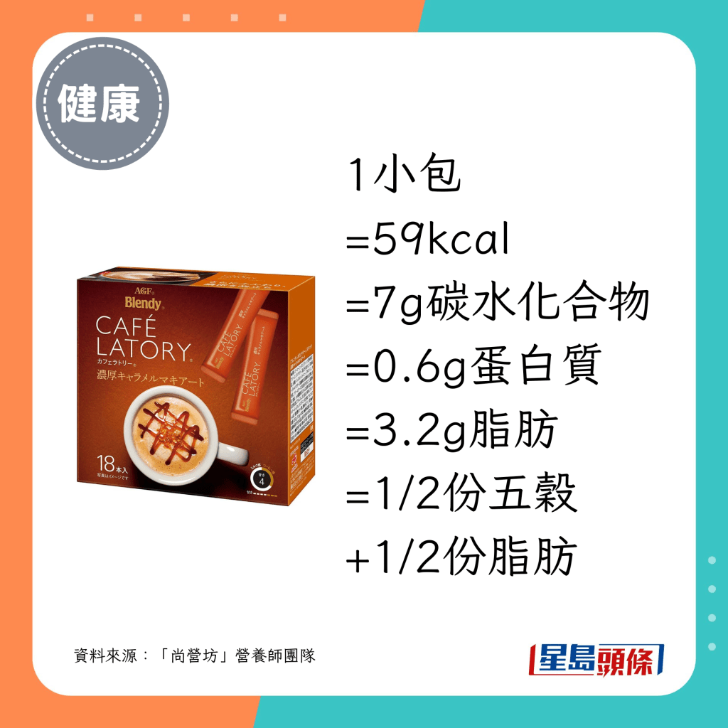 营养师团队推介的18款即冲咖啡当中,最低脂及最低卡之选如下: