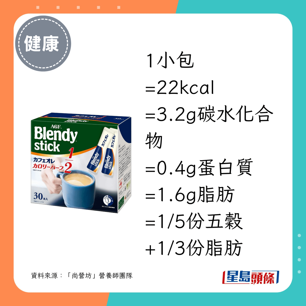 · “AGF”Blendy Stick 即冲1/2卡路里低卡牛奶咖啡:22kcal