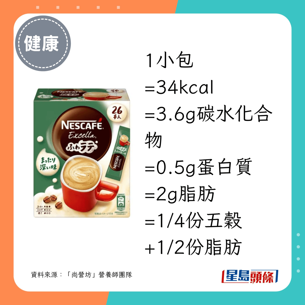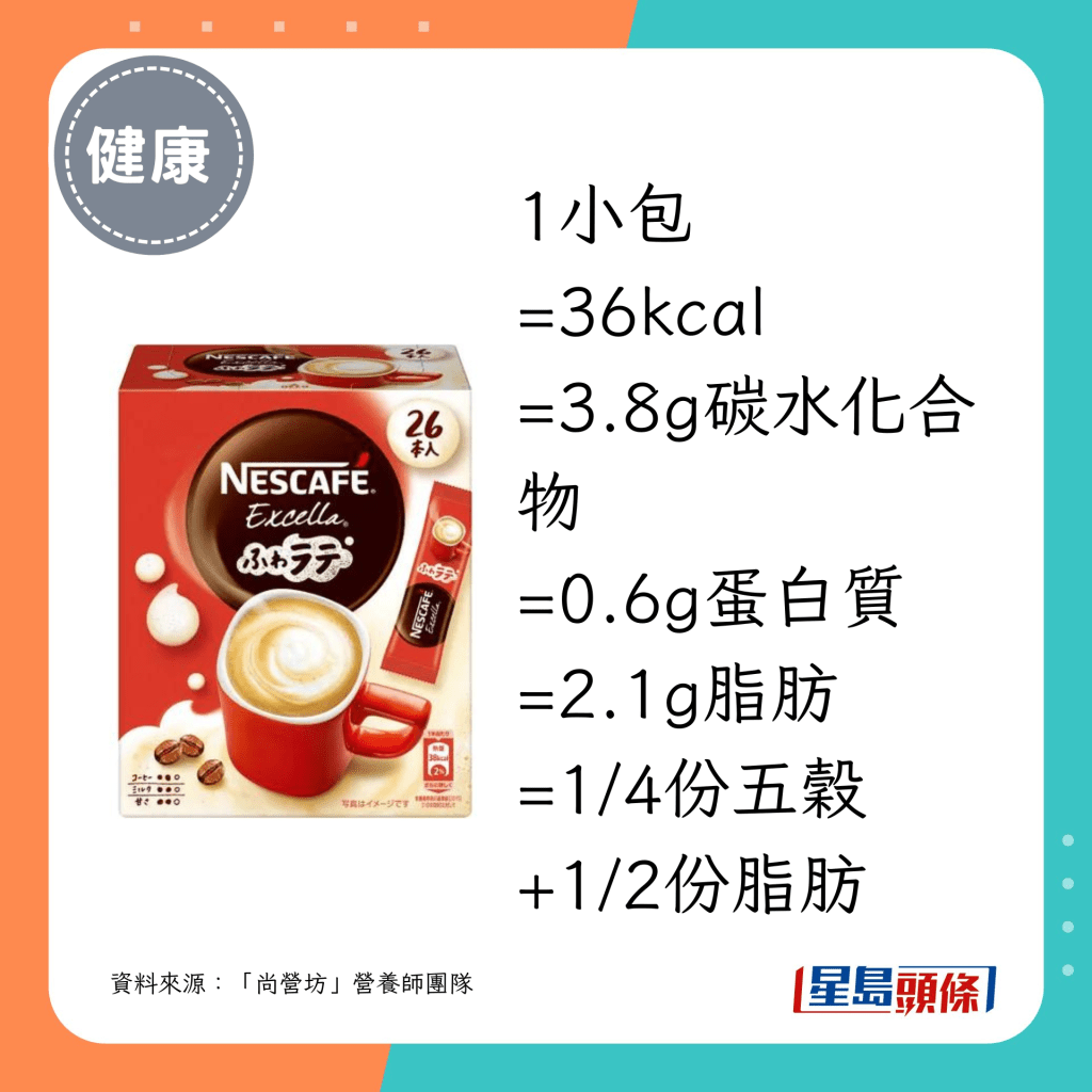 · “雀巢咖啡”Excella Fuwa Latte Half & Half:16kcal