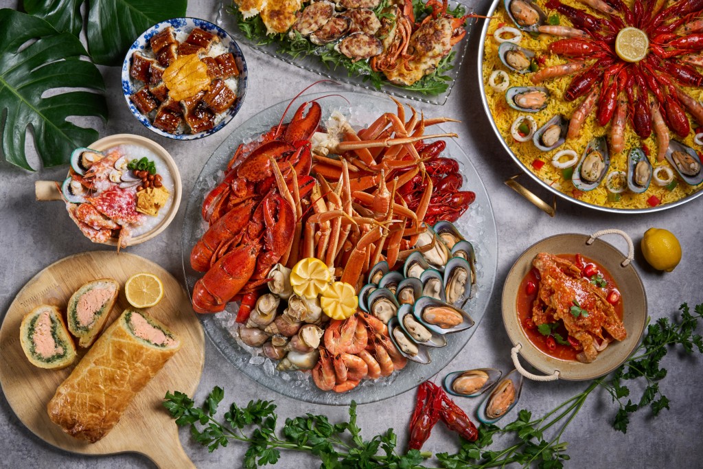 海鲜控必试4月起逢星期二、三全新推出的“环球海鲜盛宴自助晚餐”,可以一次过品尝冰镇海鲜山,有波士顿龙虾、东南亚濑尿虾、小龙虾、鳕场蟹脚、英国面包蟹、纽西兰蓝青口及加拿大翡翠螺!亦有多种刺身任君选择,如三文鱼、吞拿鱼、带子、红鲷鱼凡等;还有经典千层酥皮鲑鱼威灵顿、芝士焗龙虾、烤扇贝、酿蟹盖及海鲜生滚粥、西班牙海鲜饭、星加坡咖喱辣蟹配炸馒头等,小朋友就可叹烧物、各式甜品、Häagen-Dazs 雪糕,大人小朋友都大满足。