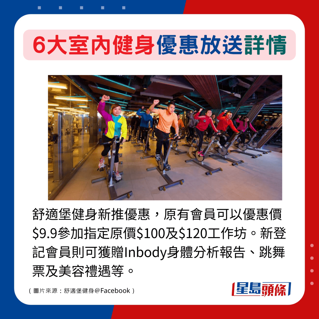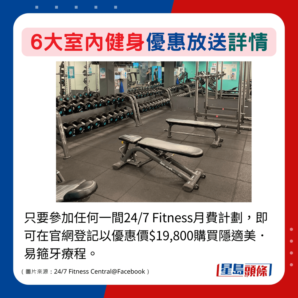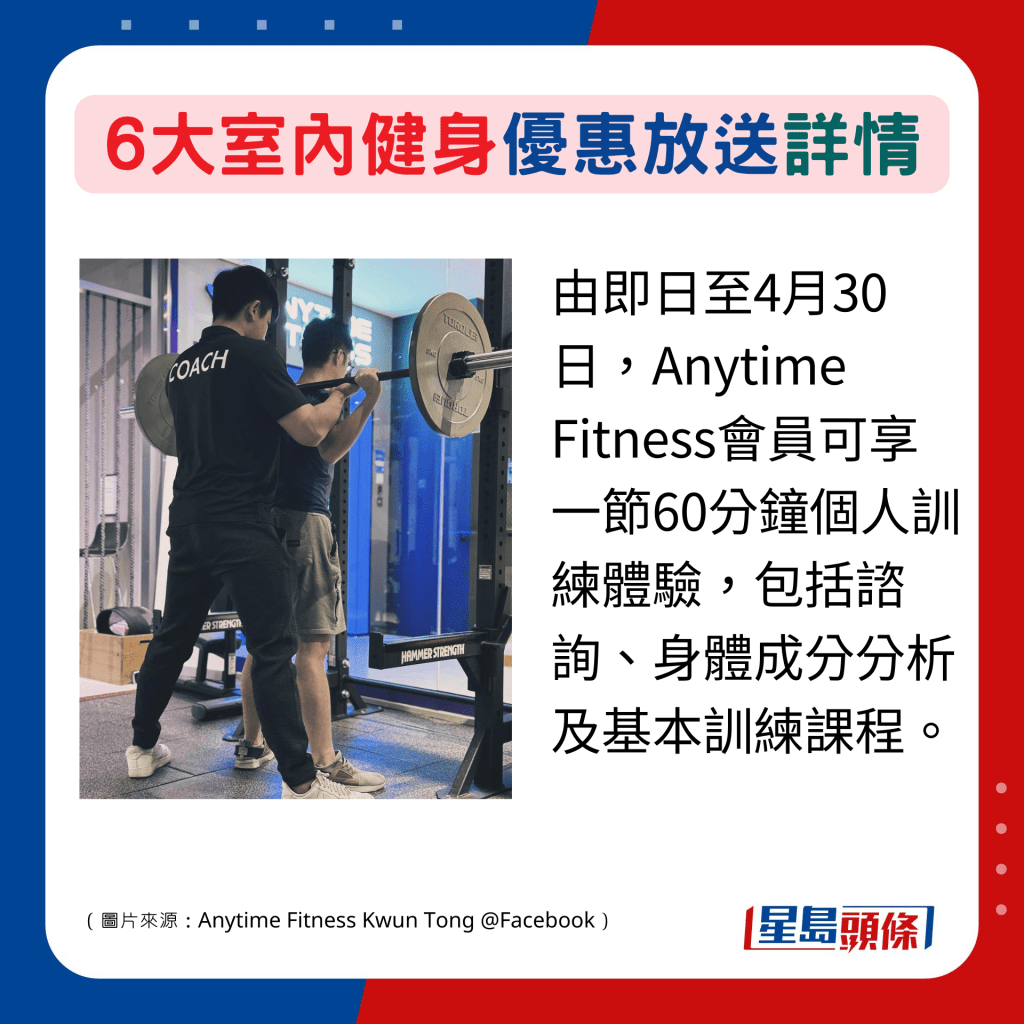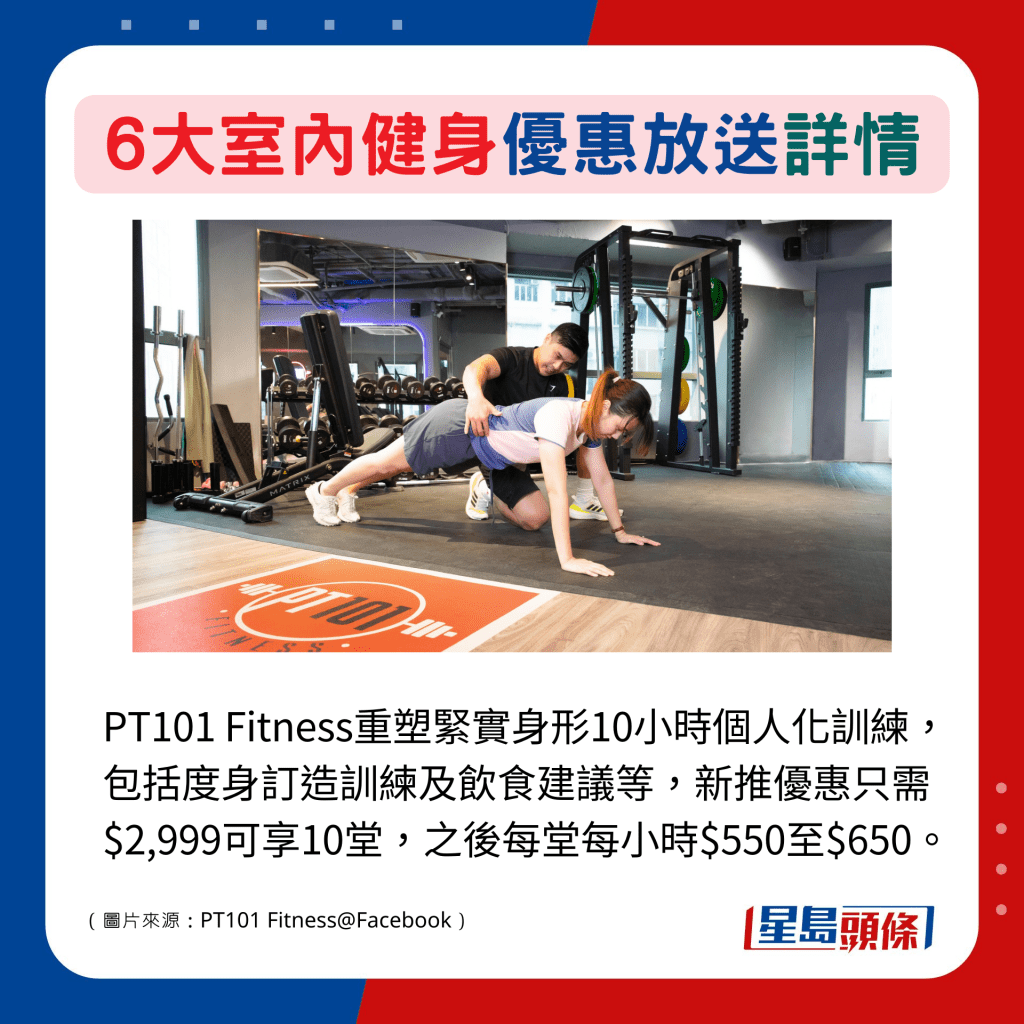 选择室内健身室,最大考虑当然是地点及营业时间,若同享优惠,就更有吸引力!对于工作繁忙的香港人来说,讲求方便首选24小时营业的健身室,其中标榜毌须预缴、免会费及无合约束缚的24/7 Fitness,全港拥有超过90间分店,现于官网登记免费体验即可享一天健身任玩,成为会员更可专享不同优惠,例如以优惠价惠顾箍牙疗程等。 至于分店同样遍布港九新界的Anytime Fitness,由即日至4月30日,会员可享一节60分钟的个人训练体验,包括身体成份分析及基本训练课程。 若想物色针对性的训练,也不乏选择,专业健身及痛症治疗中心PT101 Fitness,主力为学员提供个性化增肌减脂健身计划、体态调整及拳击瘦身训练,由即日至4月15日推出重塑紧实身形10小时个性化训练,只需$2,999便可享10堂,即约$300一堂,之后每堂每小时$550至$650,当中更加设饮食建议及度身订造训练计划。